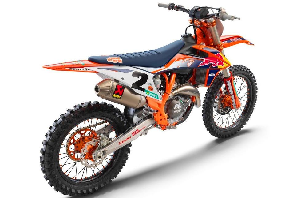 В полной мере используя опыт, собранный на бесчисленных тренировках и гонках, KTM воплотила ключевые доработки в новейшей итерации KTM 450 SX-F FACTORY EDITION, в частности - практически идентичную внешность с мотоциклами заводской команды Red Bull KTM Factory Racing с чемпионатов по суперкроссу и мотокроссу. Наряду с дизайном к мотоциклам заводской команды приближены и технические аспекты - по примеру мотоциклов Купера и Марвина FACTORY EDITION получили оранжевую раму, колёса Factory, траверсы Factory с оранжевым анодированием, композитную защиту картера, крышку сцепления от Hinson и оранжевую заднюю звезду. Также список особенностей включает компоненты вроде глушителя от Akrapovič, блокировки передней подвески Factory start holeshot device, полуплавающего переднего тормоза и защиты тормозного диска.