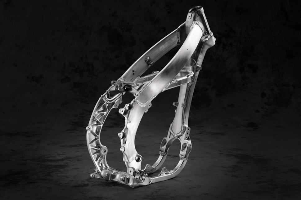 Новый двигатель установлен в новейшую версию лёгкой алюминиевой диагональной рамы, обладающей новыми характеристиками гибкости и обеспечивающей улучшенные управляемость при рулении, удержание траектории и обратную связь, давая райдеру возможность ехать быстрее и увереннее. Прочие компоненты шасси, такие как крепления двигателя, верхняя траверса, передняя ось, а также лидирующие в своём классе подвески от KYB с улучшенными характеристиками сглаживания сжатия и отбоя, были тщательно доработаны для снижения веса, а также повышения управляемости.