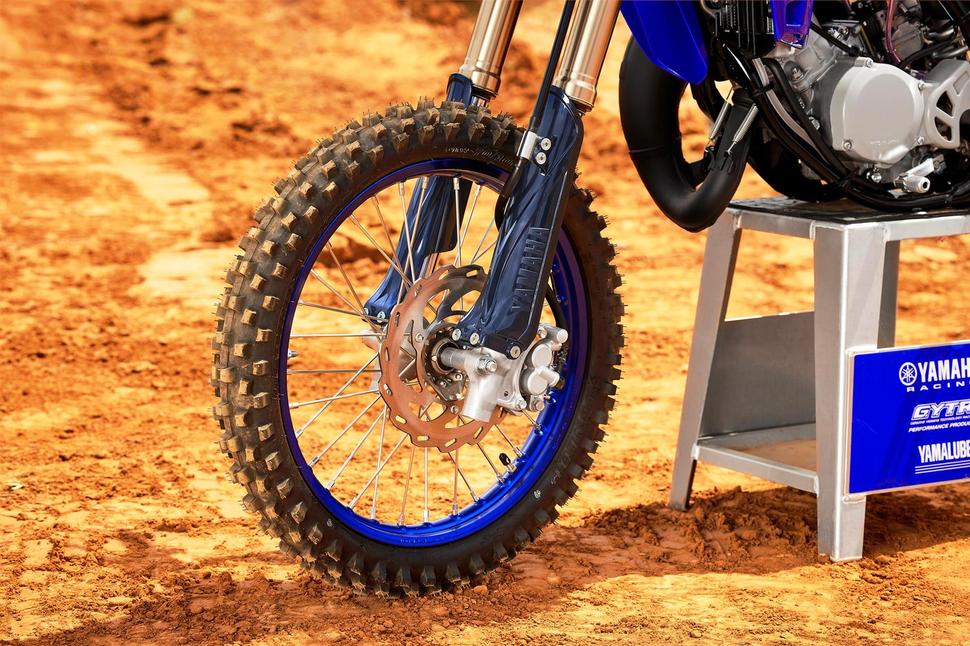Доработки 2022 года сделали Yamaha YZ85 более сбалансированным в плане подвесок и стабильным мини-мотоциклом. Пружинная вилка и амортизатор KYB хорошо уравновешены между собой, и приятно, что вилку оснастили регуляторами сжатия и отбоя для точной настройки сглаживания. По сравнению с Kawasaki KX112 Supermini 2022, Yamaha YZ85 держится более уверенно, менее склонна к излишней живости подвесок и складыванию вилки на тормозных буграх. Как и у полноразмерных мотоциклов Yamaha, заводские настройки компонентов подвесок YZ85 представляют собой отличную отправную точку для точной доводки под себя.