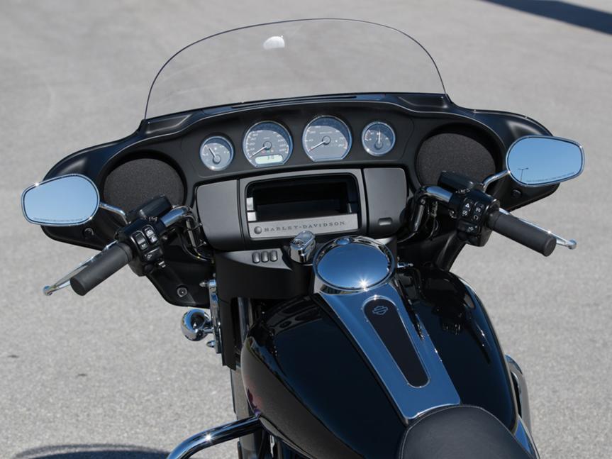 Harley Davidson Electra Glide Standard не оснащается бортовой информационной системой Boom! и сопутствующими ей динамиками, лишена Tour-Pak и комплектуется 17-дюймовым передним колесом, таким же, как на Electra Glide Ultra. Также на ней нет стоковой ABS (которая, впрочем, доступна как опция), и даже отсутствует USB-порт в бардачке, занимающем место удалённой Boom! Box. Мягкие заглушки на местах колонок непрозрачно намекают, что при желании сюда можно установить любую акустику, да и Tour-Pak без сложностей встаёт на своё "законное" место, если понадобится возможность возить больше багажа.