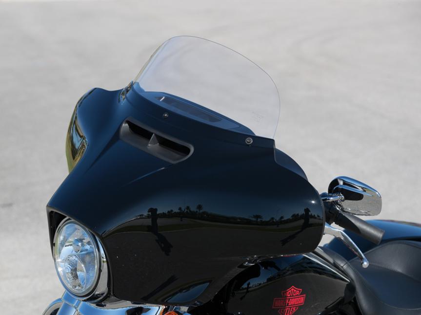 Укороченный ветровик и бэтвинг с вентиляционными каналами и одиночной круглой фарой подтвердят, что вы правильно опознали: это круизер Harley Davidson. При этом зеркала крепятся на коротких стеблях на руль, а не на обтекатель, как на старших туристических моделях. Хромированные детали, включая крышки клапанов, двигателя и сцепления, добавляют "дозу ностальгии, проводящей параллели к самой первой Electra Glide" - по словам вице-президента Harley Davidson по стилю и дизайну Брэда Ричардса. Подкрепляют минимализм дизайна окрашенные в чёрный компоненты, создающие контраст с хромированными.