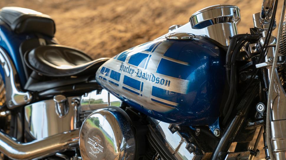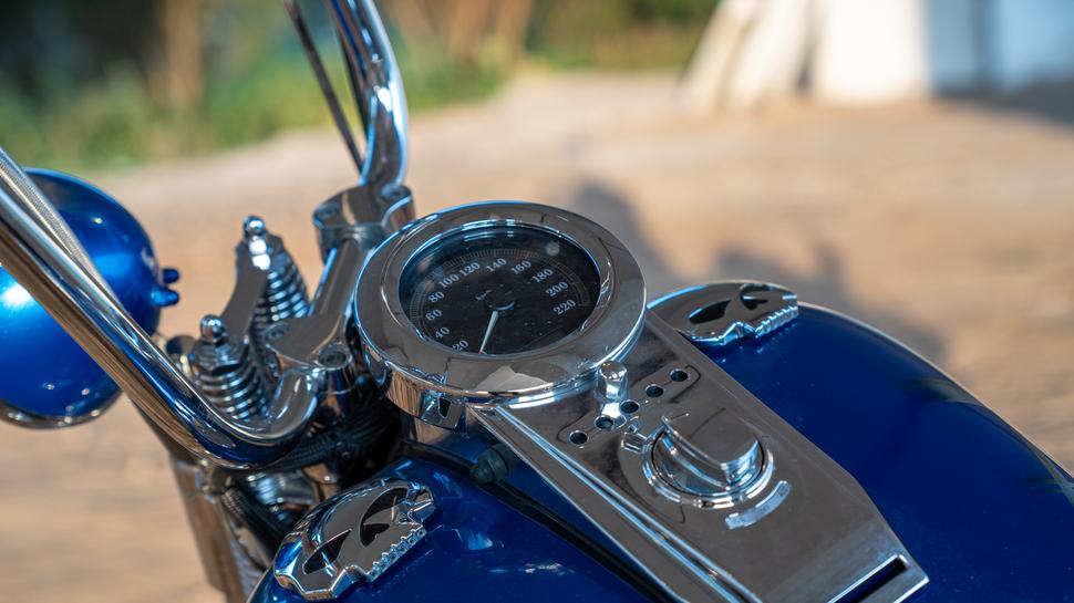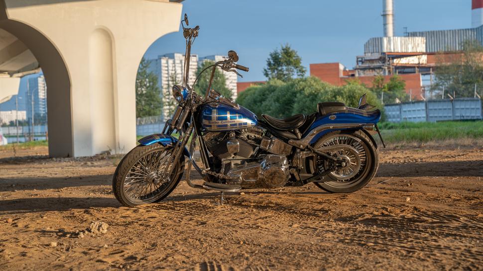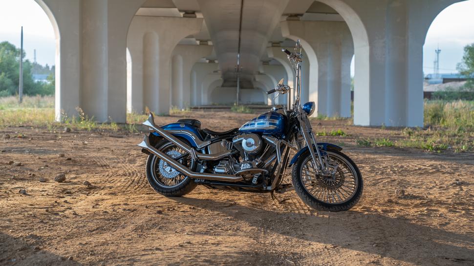 Двигатель примерно 1600 см³, 77 лошадиных сил, шесть ступеней в коробке передач и прочая скукотища, которую можно нарыть абсолютно на любом ресурсе об этом мотоцикле (Harley Davidson fxsti softail springer 2007).