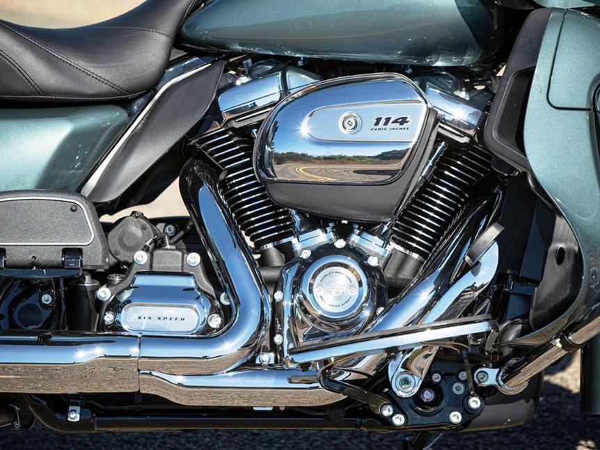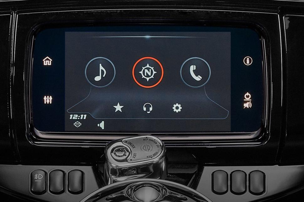 В остальном, это всё тот же обтекатель в виде акульей морды с двумя спрятанными в нём диодными фарами Daymaker, всё тот же Boom! Box GTS изнутри обтекателя, движок Milwaukee-Eight 114 с двойным охлаждением, кофры Tour-Pak, 13,5-дюймовый ветровик, и так далее.
