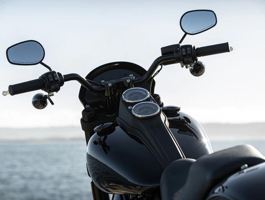 Посадка в духе Сынов Анархии - наклон вперёд с вытянутыми руками к узкому дюймовому рулю на 10-сантиметровой проставке. Дилеры Harley не раз сообщали на завод, что платформы уже не в тренде, и вот ответ - подножки с нейтральным или даже острым углом изгиба коленей.