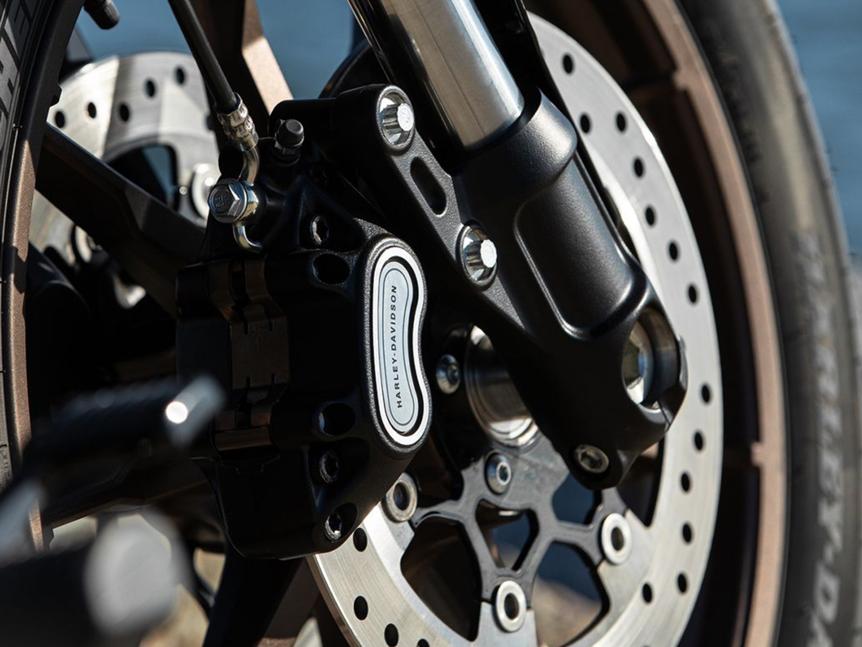 Передняя часть мотоцикла стала более спортивной: помимо второго тормозного диска мотоцикл обзавёлся перевёрнутой 43-ей вилкой Showa. Благодаря более острому углу выноса вилки (28 градусов), слегка сократившему колёсную базу со 163 до 161,5 см, мотоцикл стал острее рулиться. Для сравнения, Dyna Low Rider имел вальяжную вилку с углом выноса в 32 градуса.