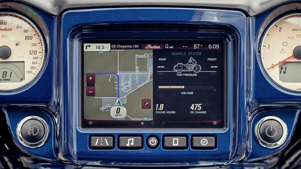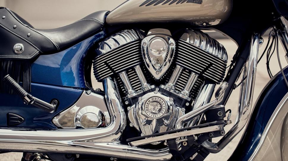 Когда речь заходит о двигателе, внешний вид важен не меньше, чем характеристики, и тут двигатель Thunder Stroke 111 на высоте. Массивный агрегат имитирует внешний вид старых нижневальных двигателей с фальшивым оребрением головок цилиндров, вкупе с кожухами толкателей клапанов. 54-миллиметровый дроссель и инжектор создают смесь для этого монстра, а одна из систем активной безопасности - режимы езды - формируют характер отклика двигателя на ручку газа. Есть три режима, которые можно выбирать на ходу исходя из условий езды. Конечно, не повредил бы ещё и трекшн-контроль, но всегда ведь есть следующий модельный год, верно, Indian? Зато в этом году они реализовали другую фишку - отключение заднего цилиндра при работе на холостых оборотах, благодаря чему двигатель снижает выделение тепла в пробках.