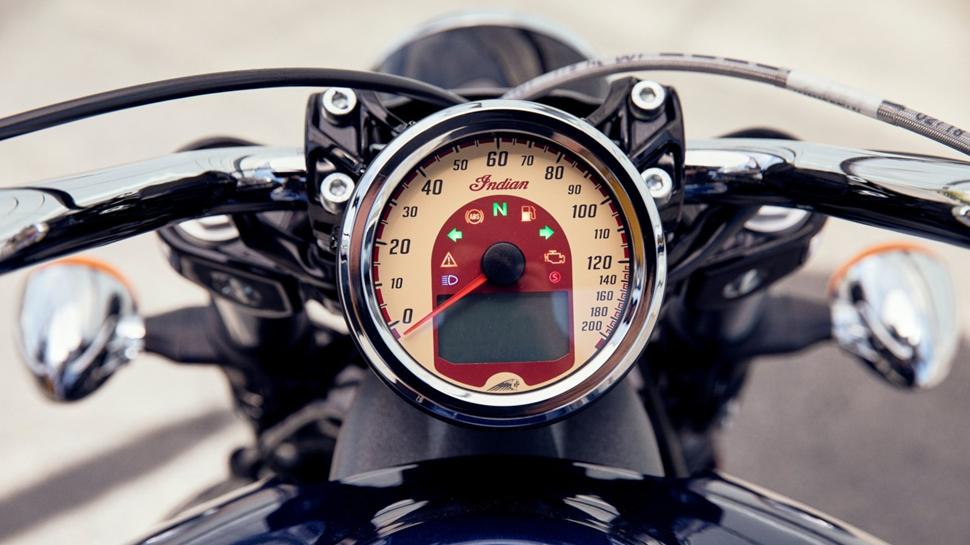 Начнём с очень круизёристого низко посаженного седла высотой 66 см. Коротышки уже заинтересовались, а вот ребятам и девчатам повыше посадка на таком низком сиденье может показаться как в закрытом чемодане — ноги вынесены вперёд и почти прижаты к животу. С низким центром тяжести Скауты рулятся изумительно. Они вёрткие и проворные, легко наклоняются в повороты, а расположение подножек такое, что придётся как следует постараться, чтобы ими шоркнуть. Сохраняя классический стиль, спидометр имеет категорически винтажный циферблат, а приборная панель байка самая базовая. Лампочки маленькие и плохо видны днём, но это нормально на ярком солнце.