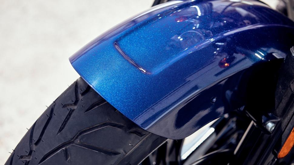 Точно как старшенький, шестидесятка питается от инжектора, охлаждается жидкостью, выглядит тоже как имитация нижневального двигателя с фальшивыми толкателями на чёрных горшках, а выдаёт 88 Нм на 5800 об./мин. Неплохо для байка с весом в 250 килограммов.