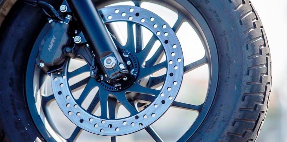 Гидравлические тормоза Nissin установлены как спереди, так и сзади. Их начальный захват нельзя назвать мощным (как и должно быть на новичковом мотоцикле), но при дальнейшем выжиме тормоза развивается мощное и управляемое тормозное усилие, и мотоцикл плавно останавливается. Это очень хорошо для начинающих райдеров, для которых предпочтительно более контролируемое и последовательное торможение даже при резком нажатии на ручку тормоза, которое порой выдаёт рука напуганного новичка. Обе версии Rebel, и 300, и 500, могут опционально оснащаться ABS - что тоже весьма неплохо для начинающего.