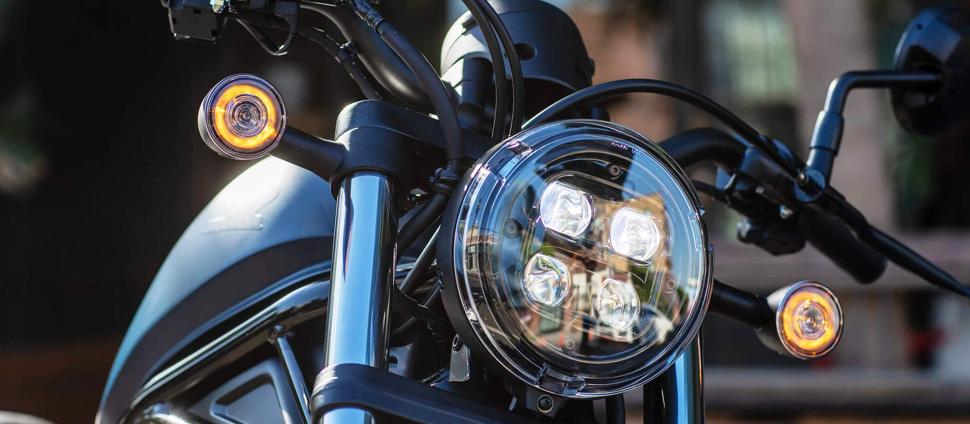 Новый диодный свет тоже значительно выделяет Honda Rebel 500 2020 года на фоне прошлых версий. Четыре диодных источника расположены в круглом корпусе, а диодные же поворотники и задний фонарь (и вплоть до подсветки номера) современны и изящны. Задний фонарь прошлых версий странно торчал назад, но у новой версии он смотрится вполне симпатично.