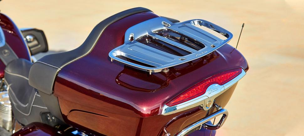 Семейство Touring компании Indian за последние пару лет выросло до пяти моделей: во главе стоят Roadmaster Elite и ограниченная версия Jack Daniel’s Roadmaster Dark Horse - яркие соперники Harley Davidson-овских CVO, оснащённые премиальной отделкой, аксессуарами и компонентами.
