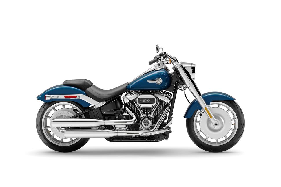 - Fat Boy 114: легенда "толстых" кастомов, внушительностью напоминающая асфальтовый каток. В 2022 году его литые легкосплавные диски Lakester получили новый дизайн, напоминающий турбину с открытым центром, а классическая эмблема Fat Boy на баке была обновлена и теперь имеет единственное крыло.