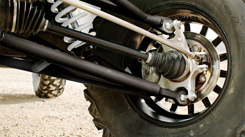 Самые мягкие в своём классе. Подвесками Wildcat XX занимался Робби Гордон, и рычаги RG Pro представляют собой произведение конструкторского искусства. Более того, они симметричные - то есть, один и тот же рычаг подходит и на левую, и на правую сторону вездехода, что позволяет тратить меньше денег на запасные комплектующие. Ходы обеих подвесок составляют 18 дюймов (это 45 сантиметров с небольшим), и они очень мягкие. Амортизаторы Fox Podium 2.5 QS3 лучше всего работают на полной жёсткости сзади и на средней позиции спереди. Малое плечо обката шин при ходах подвесок улучшает сцепные свойства на скорости, как и двойные торсионы. Любители покататься по холмам или дюнам вероятно сочтут подвески слишком мягкими, даже несмотря на наличие антипробоя на задних амортизаторах.