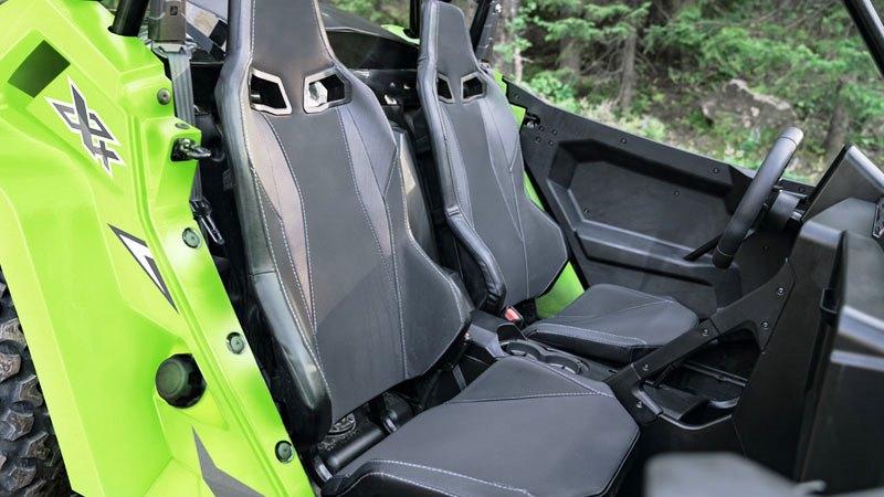 Wildcat XX суперкомфортный. Сиденья удобные и надёжные, и на них могут ставиться как четырёхточечные, так и шеститочечные (Click-6) ремни. Вибрации малозаметны, а глушитель звучит негромко и приятно. Пассажирское место оснащено пластиковыми поручнями на приборной панели и на двери, а сама дверь имеет мягкую обшивку и оставляет достаточно пространства, чтобы не биться локтем. Приборка легко читается, а довольно удобен, несмотря на излишне рельефные выступы под большие пальцы. Сиденья удобны для райдеров разной комплекции, разве что самым высоким будет несколько неудобно садиться в них и выходить из вездехода. Качество езды превосходно - мягкие, но чёткие подвески позволяют отлично проходить самые сложные и неровные участки.