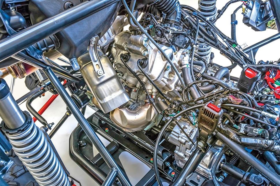 Ширина колесной базы Honda Talon 1000R больше – 174 сантиметра. По данным Yamaha ход подвесок YXZ1000R SS составляет 41 сантиметр спереди и 43 сантиметра сзади. Ход подвесок Honda Talon 1000R составляет 45 сантиметров спереди и 51 сантиметр сзади. Длина колесной базы Honda Talon 1000R – 235 сантиметров против 230 сантиметров у YXZ1000R SS. Шины YXZ на дюйм выше. Fox поставляет амортизаторы для обоих квадроциклов, но те, что установлены на Yamaha YXZ1000R SS, имеют гораздо больше регулировок – каждый амортизатор позволяет регулировать силу высоко-низкоскоростного сжатия и отбоя. В отличие от Talon 1000X, Talon 1000R имеет двухступенчатую регулировку пружин амортизаторов, а сами амортизаторы имеют три режима по усилию сжатия, но не имеют регулировок по усилию отбоя.