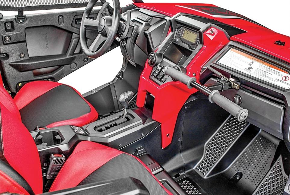 Обзор из кабины немного лучше в Yamaha YXZ1000R SS, пространства для ног достаточно, а сидения комфортны. В Honda Talon мы постоянно пытались отодвинуть сиденье водителя назад – места для ног недостаточно. На месте пассажира странная форма пола тоже не добавляет комфорта. Вы должны поставить одну ногу на высокую часть и одну вытянуть прямо или согнуть обе ноги на высокой части пола. Глубокая часть пола слишком узкая для обеих ног. Нам не нравится, что в Yamaha YXZ1000R SS подстаканники расположены у ног пассажира, но ими вполне можно пользоваться и вода в бутылке не нагревается, как это бывает на некоторых квадроциклах. Нам понравилось расположение и термоизоляция подстаканников Honda Talon 1000R. Емкостей для хранения достаточно в обоих квадроциклах. Нам больше понравились цельные двери на Yamaha, но в целом двери и их замки хорошо работают на обоих квадроциклах.