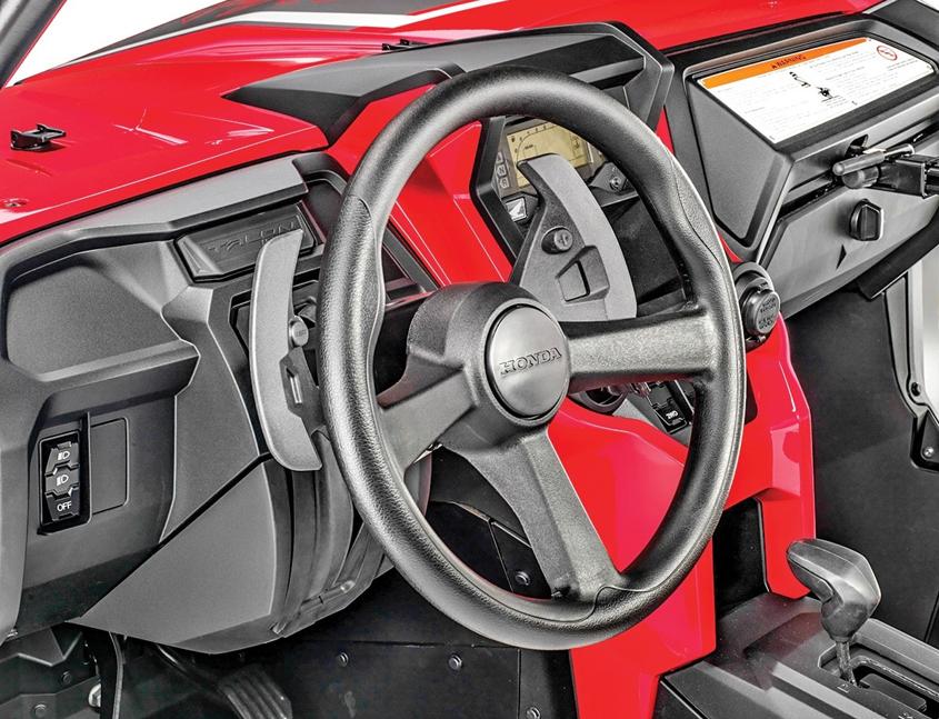 Вы должны либо нажать кнопку отключения автоматического режима, либо начать использовать подрулевые лепестки, чтобы перейти в ручной режим. Talon - единственный UTV на планете с такой КПП, и это один из его лучших активов.