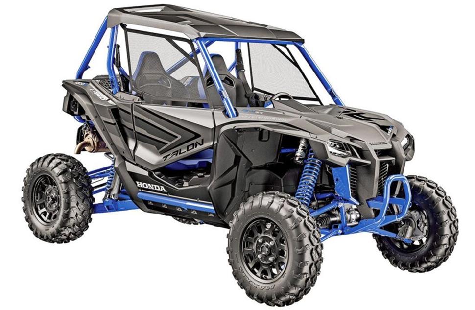 Honda Talon 1000R Live Valve имеет колёсную базу в 92,7 дюймов (235 см) и ширину в 68,4 (173 см), ход передней подвески составляет 17,7 дюймов (45 см), а задней - 20,1 дюйм (51 см). Задняя подвеска оснащена фирменной рычажной системой 4+ Link. Вездеход поставляется в цвете Metallic Grey с синей рамой и пружинами амортизаторов.