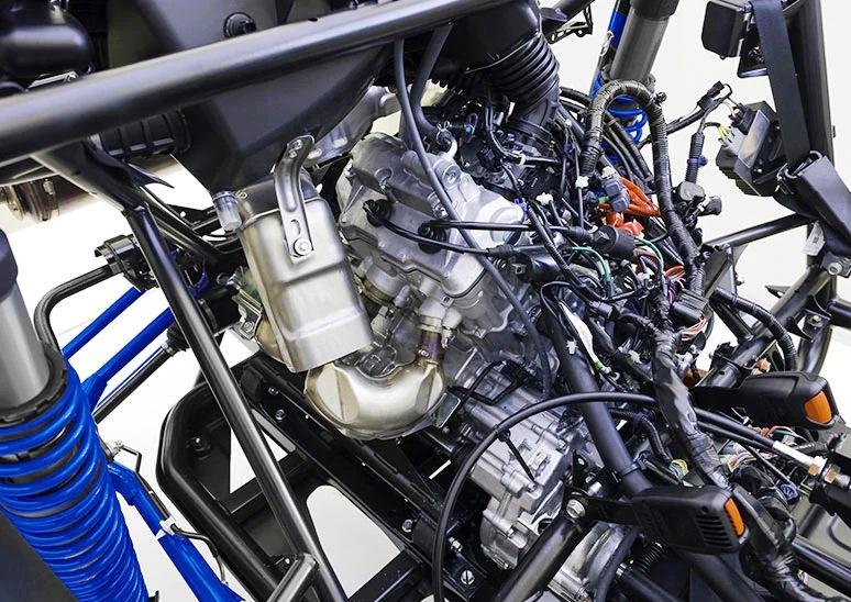 Двухместные Honda Talon Live Valve имеют те же размеры, двигатель, трансмиссию и систему полного привода, как и другие двухместные Talon. Двигатель - рядная атмосферная двойка с единственным верхним распредвалом и восемью клапанами - выдаёт 104 лошади, но ощущается мощнее, потому что шестерёнчатая трансмиссия Honda передаёт тягу более быстро и эффективно, чем большинство клиноременных вариаторов на конкурентах.