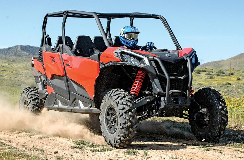 Управляемость предсказуема, стабильна и очень хорошо сбалансирована, но нельзя забывать, что колесная база Sport Max на 76 сантиметров длиннее двухместной версии. Он поворачивает не так быстро, как двухместный, а разворот требует немного большего пространства из-за более широкого радиуса поворота машины. Тем не менее, преимущества у более длинной колесной базы тоже есть. Квадроцикл Sport Max впечатляюще спокойно ведет себя на кочках и прекрасно чувствует себя на пересеченной местности, в быстрых поворотах и на прямой. Он также хорошо управляется в заносе. Это не X3, но он очень хорош, а ширина в 152 сантиметра позволяет покорять тропинки, которые слишком узки для более широких квадроциклов.