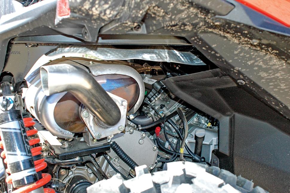 Благодаря настройкам двигателя и трансмиссии Sport Max имеет хорошее ускорение. Двигатель быстро набирает обороты и при этом хорошо звучит. Вы можете легко почувствовать все его 100 лошадиных сил, но такой характер не слишком удобен для комфортной езды или преодоления сложных препятствий. Если вам нужна более спокойная реакция педали газа Can Am для сложной трассы или малоопытного водителя, вы можете выбрать режим Eco, который обеспечивает более плавный отклик двигателя и имеет ограничение по максимальным оборотам.