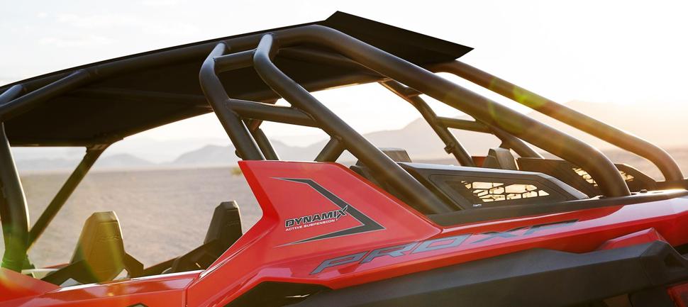 А вот вам повод для брюзжания - это крыша. Ну как можно за такие деньги продавать (а главное - купить) вездеход без крыши? Алюминиевая афтермаркетная крыша, которую поставили на наш тестовый Polaris RZR PRO XP 4, станет прекрасным и необходимым решением, если вы планируете оставить стоковую клетку.