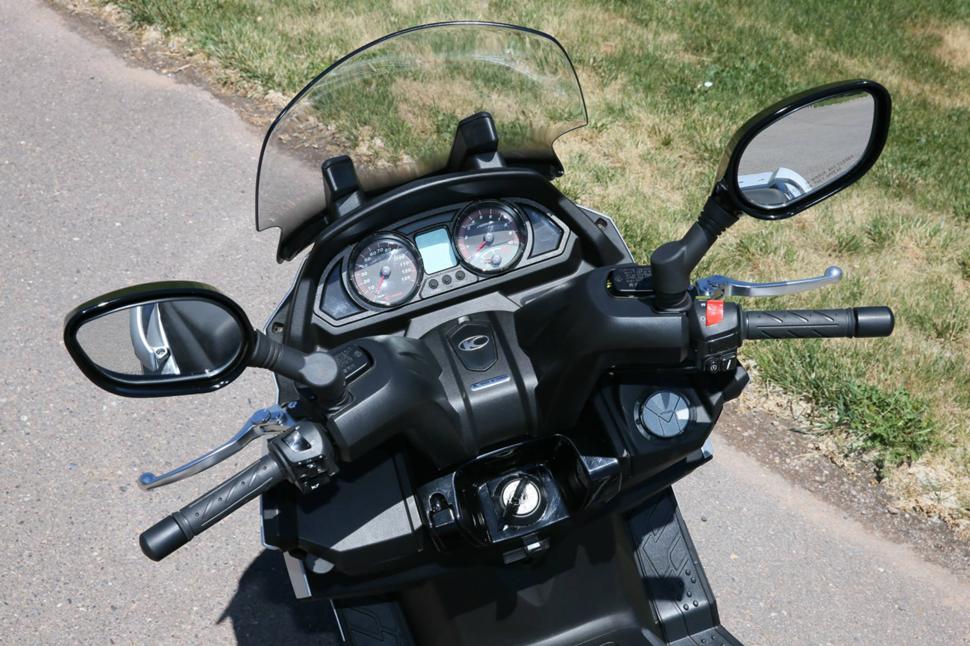 По словам моего коллеги, макси скутер Kymco MyRoad 700i - “середнячок во всём”. Это подтверждается его третьим местом в нашем тесте. Kymco MyRoad 700i удивил нас электронной подвеской, радиальными тормозами и неплохой управляемостью. Но его тесная посадка, малый клиренс, не слишком высокое качество отделки, вибрации двигателя, угловатый дизайн пластика, плохонькие зеркала и раздражающе громкий звук поворотников делают его сильно хуже, чем он мог бы быть. “Мелкие детали, но они не дают ему быть тем, чем он задуман - премиальным скутером”. Не то чтобы он особенно плохой, но на поле топовых максискутеров ставки высоки, а во многих аспектах он выглядит так, будто Kymco слишком торопились с его выпуском. Мой коллега блестяще подвёл черту под 700i: