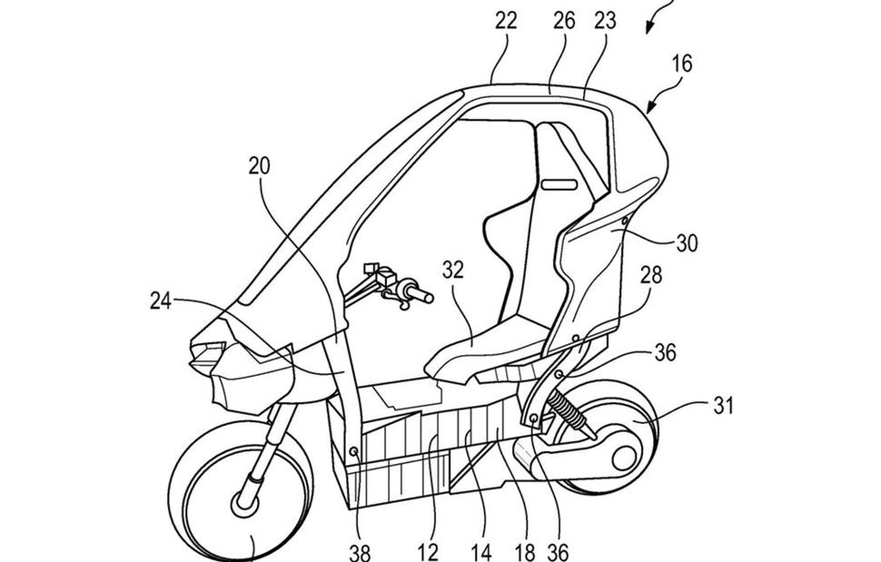 Обычный - в широком смысле. Идея BMW, на которой основаны целых 15 патентов за несколько последних месяцев, представляет собой электрический скутер, основанный на шасси, аккумуляторе и трансмиссии C Evolution. Как и провальный C1, C Evolution дорого стоит и медленно продаётся, но в отличие от предшественника, он продолжает выпускаться - и одно это подтверждает, что BMW настроены играть на рынке электротранспорта весьма серьёзно.