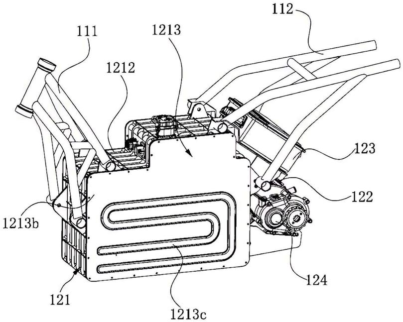 Также в патенте CFMoto отдельно отражено решение по охлаждению аккумуляторной батареи, ещё раз иллюстрирующее модульный характер конструкции. Одни и те же базовые компоненты могут быть использованы для создания аккумуляторов как с воздушным, так и с жидкостным охлаждением, с оребрённой боковой панелью в случае первого варианта и с гладкой для второго. Батарея с жидкостным охлаждением обеспечит более высокую производительность и более быструю зарядку, но будет стоить дороже, чем версия с воздушным охлаждением.