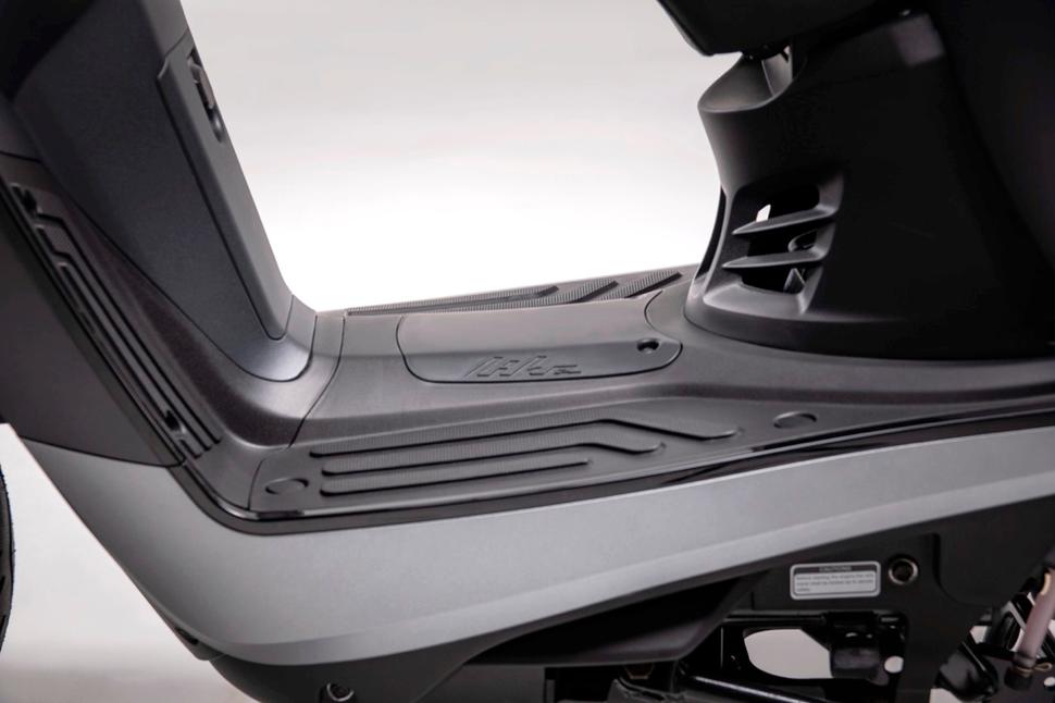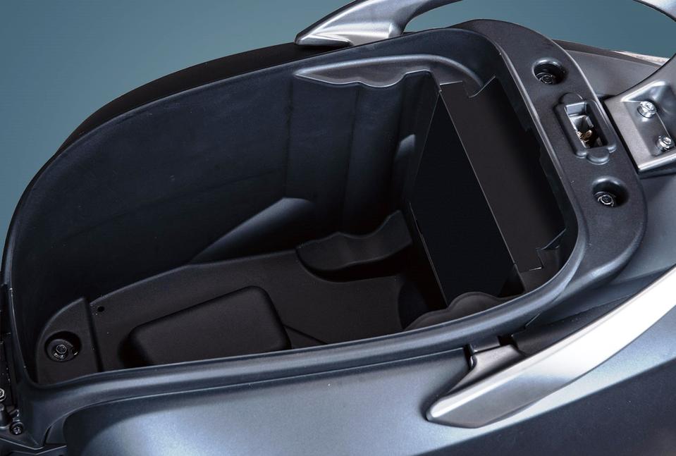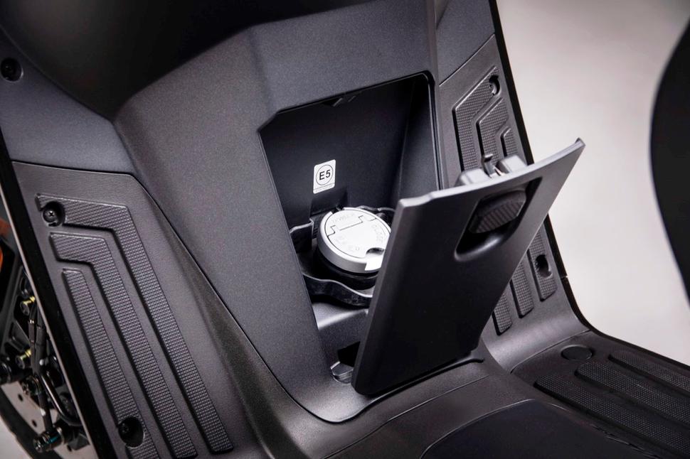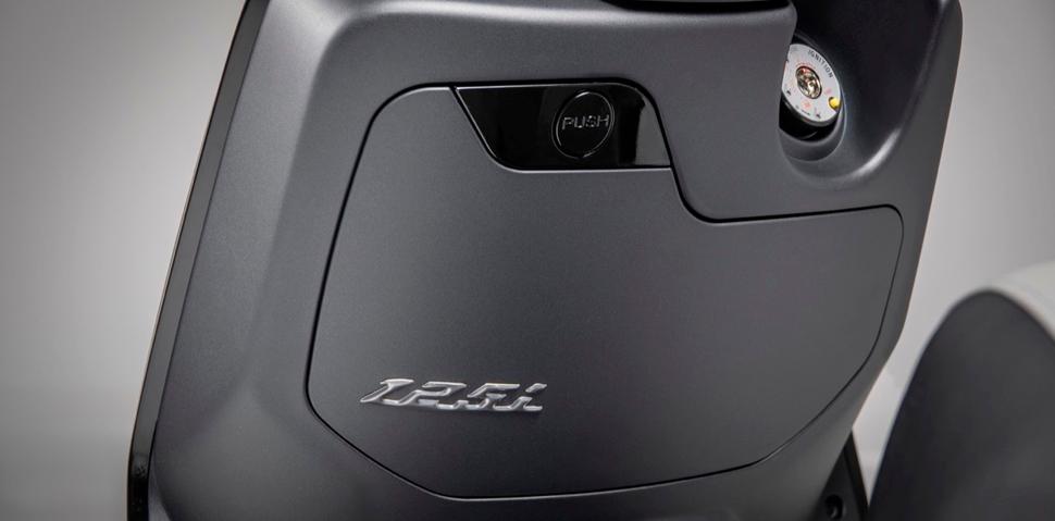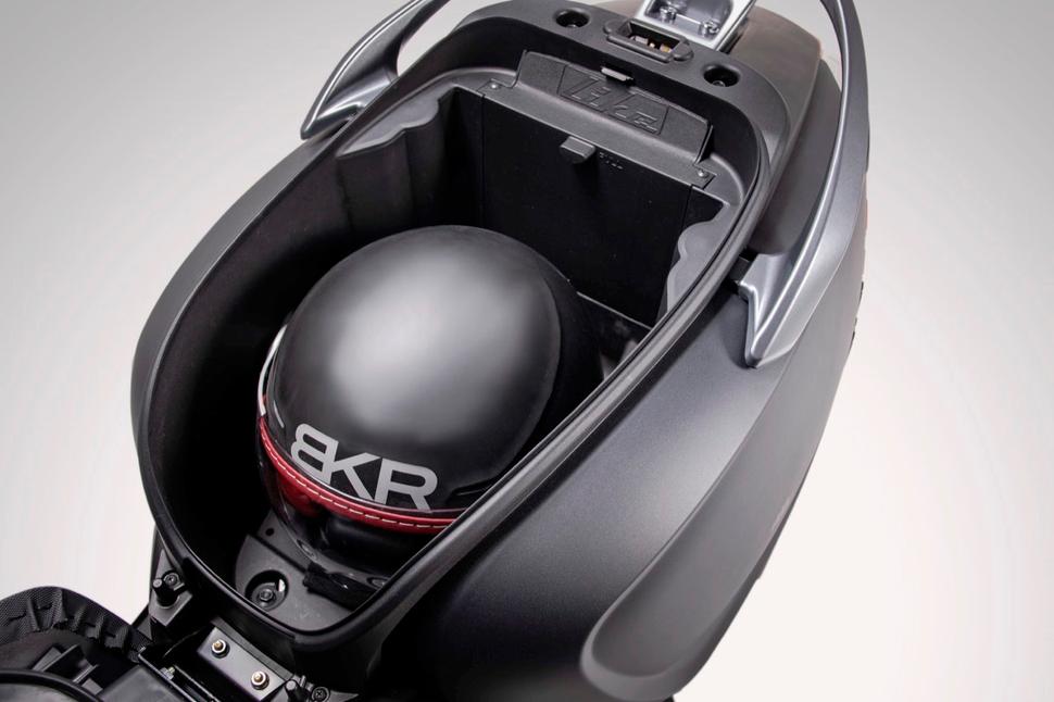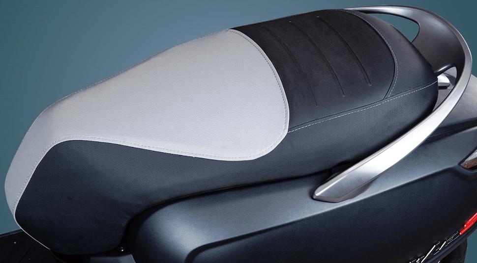 Цельное двухсекционное сиденье с мягкой набивкой закрывает традиционный для городских скутеров подседельный кофр. Кроме него скутер оснащён передним бардачком с USB-гнездом и цифроаналоговой приборной панелью, совмещающей лучшие аспекты прошлого и настоящего. Учитывая вес в 129кг, скутер подойдёт райдерам самого разного роста.