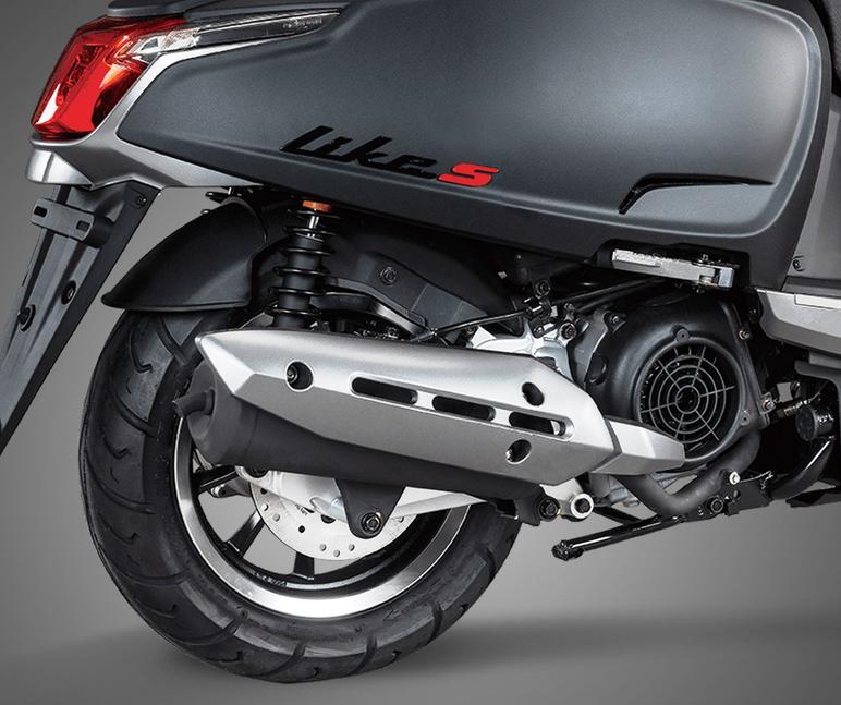 Предназначение версии Sport сразу читается в её чёрной ливрее: большинство кузовных панелей покрыты графитово-чёрным полуглянцем, с полностью чёрными концами вилки, решётками и зеркалами. Серые боковые панели, тепловой экран глушителя и пассажирские ручки придают некоторого контраста, а красные S на эмблемах с названием модели создают яркий цветовой штрих. Несмотря на тёмную схему, Kymco Like 125 Sport комплектуется яркой диодной светотехникой для отличной видимости в ночи.