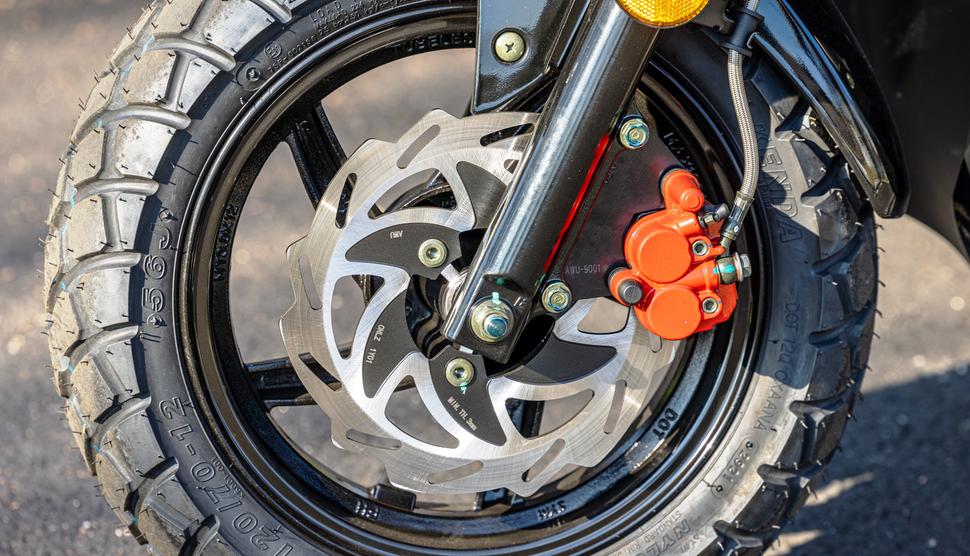 В Lance Cabo 125 довольно отчётливо прослеживаются внедорожные мотивы - например, клиренс в 20см и 12-дюймовые универсальные шины. На нём вполне возможно аккуратно преодолевать бордюры, тем более, с таким небольшим весом, а куда он не сможет вскарабкаться, туда его можно просто вкатить. Несмотря на достаточно высокий дорожный просвет, сиденье кажется даже ниже заявленных 79см - возможно благодаря тому, что оно довольно узкое.