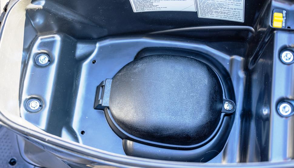 Что касается багажной ёмкости, то тут всё достаточно скромно. Подседельный кофр Lance Cabo 125 настолько мал, что в него не вмещается даже открытый шлем, и ещё хуже, что под седлом нет крючка для крепления шлема за пряжку. И это, пожалуй, главный минус Cabo, хоть и не самый страшный. За покупками на нём ездить вполне можно: под седло вмещается достаточно много, на переднем щитке имеется удобный крюк, а заднее сиденье оборудовано поручнями, к которым можно при помощи резинок или багажных строп прикрепить хоть туристический рюкзак безграничной ёмкости.