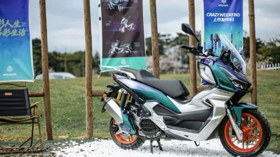 Тем не менее, множество китайских брендов, работающих на внутренний рынок и малоизвестных за его пределами, выпускают скутеры в приключенческом дизайне. Одна из таких новинок называется MVCagiva Crazy Weekend 150, и нет, это не опечатка и не ошибка. Это новый китайский "бренд", не имеющий никакого отношения ни к MV Agusta, ни к Cagiva, но явно питающий к итальянским маркам самые тёплые чувства. При этом, несмотря на откровенно трэшовый брендинг, сам скутер получился достаточно симпатичным, особенно если рассматривать его вне контекста. Правда, стоит только его сравнить с одноклассниками - и тут же возникают вопросы, почему это он так похож на Honda X-ADV и её мелких собратьев ADV150/160.