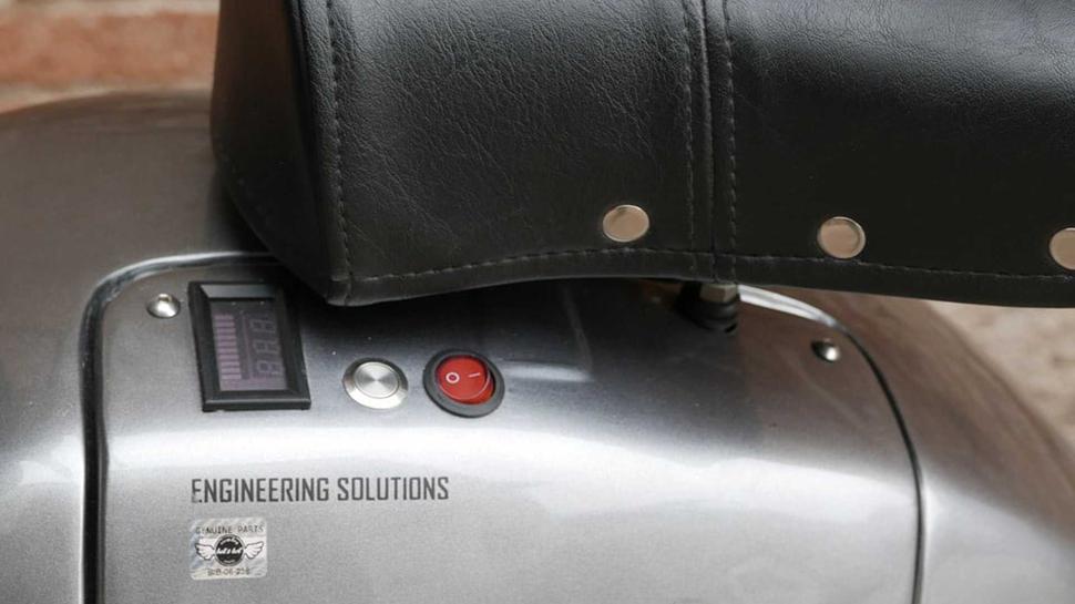 "Малыш" полностью электрический и питается от 60-вольтовой литий-ионной батареи, способен развивать до 32 км/ч (да, это скорей забавный городской самокат, чем серьёзный транспорт). Запас хода составляет от 48 до 64 км, чего вполне достаточно для поездки на работу по городу. Руль оснащён индикатором заряда батареи и выключателем фары.