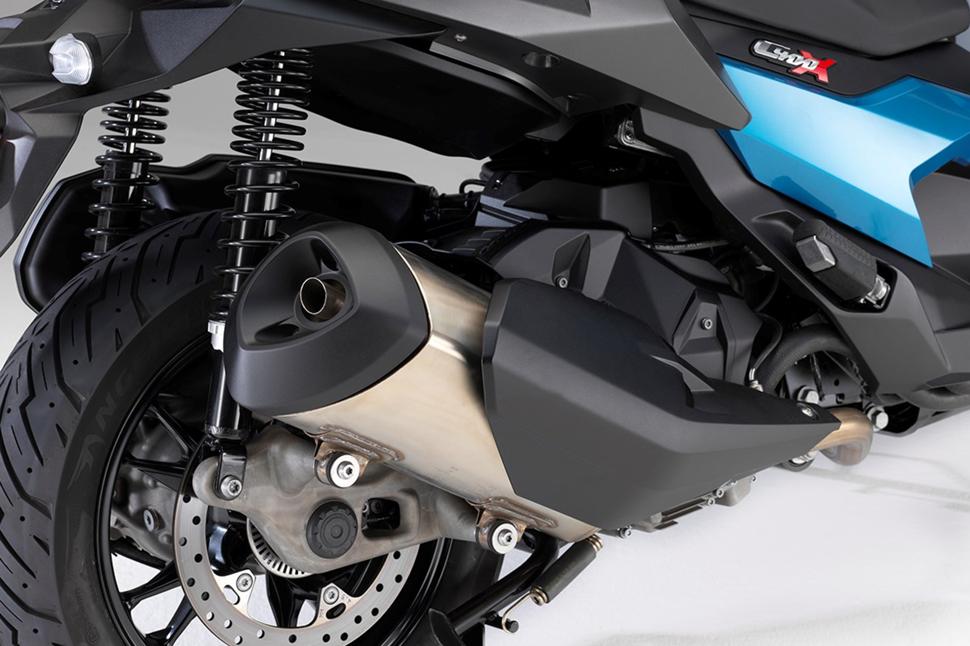 Сердце BMW C400X -четырехклапанный двигатель с одним цилиндром, с водяным охлаждением, объемом 350 см3. Вырабатываемая им энергия передается с помощью трансмиссии типа вариатор. Вариатор проектировался специально для разгона - BMW C400X очень юркий, когда трогается с места. Трансмиссия производит отличный крутящий момент, практически отсутствует вибрация (зеркала не прыгают на любой скорости) и без проблем ведёт байк на скорости порядка 140 км/ч. Расход топлива BMW C400X составляет менее 3 литров на 100 км пути, а одного бака хватит более, чем на 350 км. Такие новости особенно порадует тех, кто часто ездит за город.