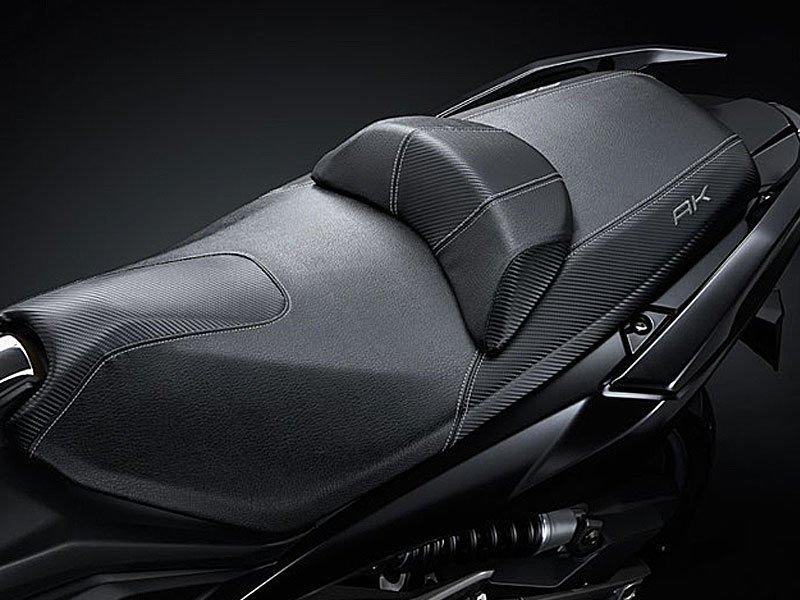 Как всегда в скутерах, поднимающееся сиденье - это отсек для хранения. Но, несмотря на внешние размеры Kymco AK550, туда может поместиться только один интеграл и модуляр. Так что если пассажиру требуется полная экипировка - будьте готовы закреплять её позади себя. Широкое сиденье водителя снабжено поддержкой поясницы, которая ещё и поймает пятую точку во время резкого ускорения. Само сиденье продолжается и уходит назад, сохраняя всю ширину и сопровождается перекладинами, за которые может держаться пассажир или фиксироваться груз.