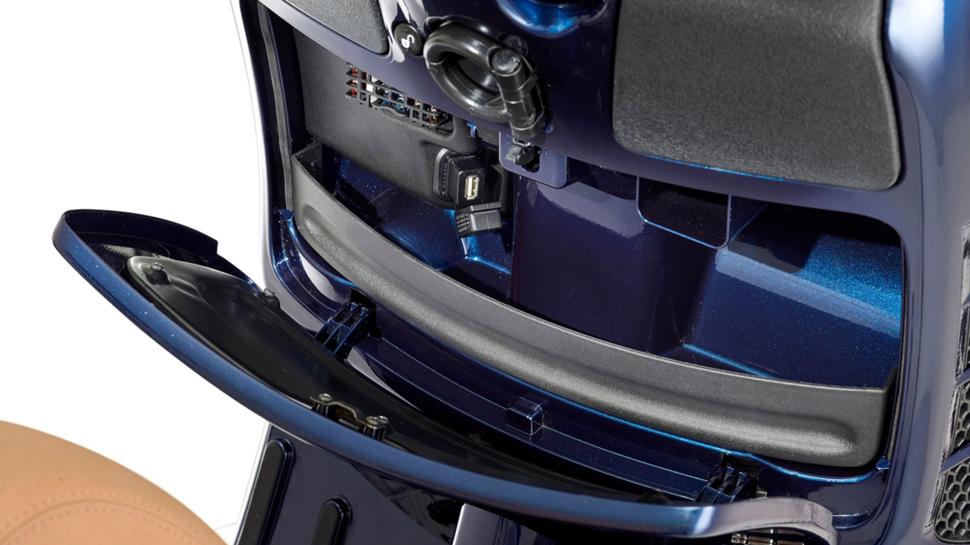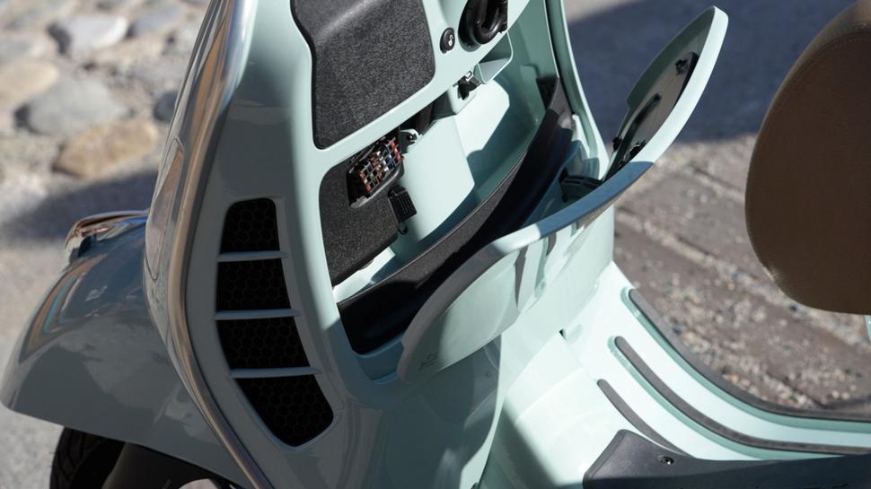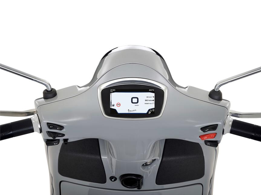 Также скутер Vespa 300 GTS был слегка обновлен по дизайну, получив горизонтальное ребро, проходящее через передний щит прямо над крылом. Оно не повлияло на общее впечатление от дизайна, но смотрится неплохо. Новая модель оснащается полным комплектом диодной светотехники, а бортовая электроника получила поддержку платформы Vespa Mia, которая с помощью Bluetooth позволяет установить связь между смартфоном и ЭБУ Vespa GTS. Новое приложение Vespa для смартфонов поддерживает любые модели Vespa с цифровой приборной панелью, а конкретно в линейке GTS 2019 это модель SuperTech, оснащаемая 4,3” дисплеем в качестве приборки.