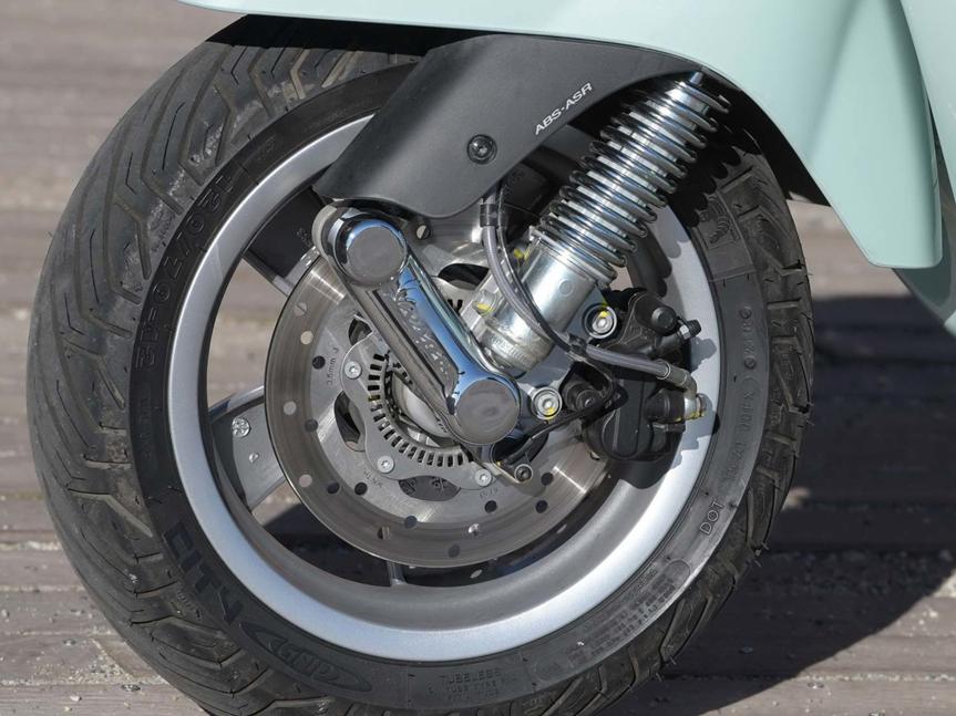 Связка двигателя и вариатора чрезвычайно эффективна, точна и легка в управлении; шасси обеспечивает отличный баланс и управляемость даже на малых скоростях при маневрировании между стоящими машинами на светофоре. Руление быстрое, точное и чёткое, и здесь я ощутил улучшение даже в сравнении с предыдущим поколением GTS 300. Я ощущал себя уверенно даже шныряя по каменистой мостовой в потоке на 50-60 км/ч. А дисковые тормоза, оснащённые ABS, добавляют уверенности.