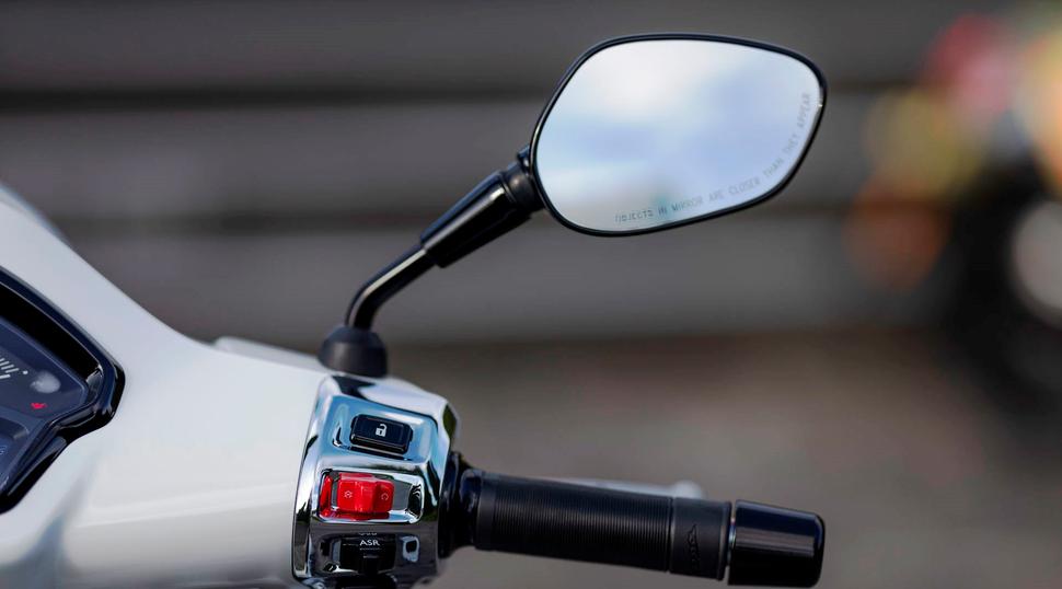 Простая приборная панель Vespa GTS 300 состоит из большой шкалы спидометра, под которым встроен небольшой ЖК-экран со шкалами температуры антифриза и уровня топлива, одометром, трипметром и прочим. Дисплей, несмотря на внешнюю простоту, может соединяться со смартфоном и отображать информацию о входящих звонках и сообщения. Пульты простенькие и лаконичные: небольшой джойстик для навигации по дисплею, переключатель поворотников, качелька ближнего-дальнего, килл-свитч, кнопка стартера и кнопка открытия подседельного кофра.