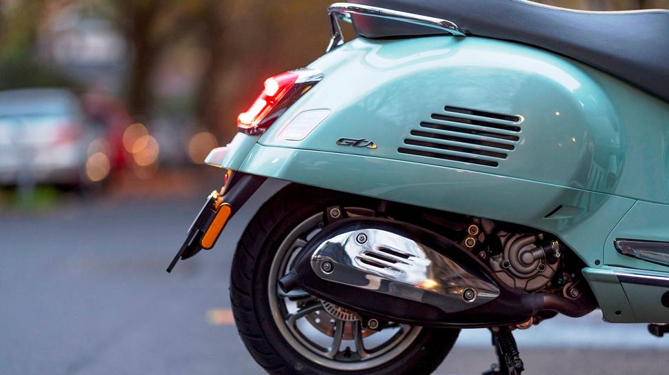 В общем, часы, проведённые на новой Vespa GTS 300, очень порадовали - она легко усвистывает от потока на светофоре, держит дорогу уверенно и стабильно, ничто не болтается и не скрипит, всё работает как надо. Даже зеркала не разболтались. Так что если уж Веспа способна пережить испытания, то и в качестве повседневного городского мопеда вполне сгодится.