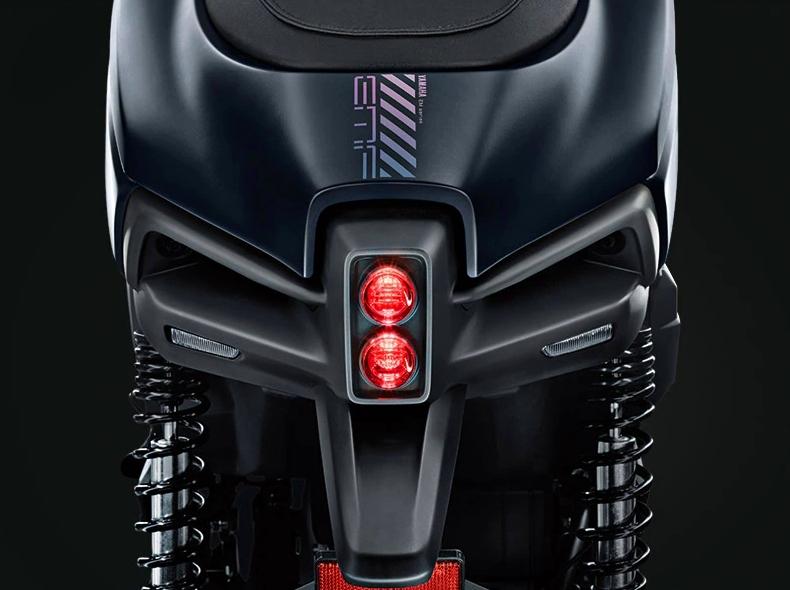 Несмотря на компактный размер, EMF - довольно шустрая штука. 7,6-киловаттный мотор разгоняет его с нуля до 50км/ч за 3,5 секунды - это эквивалентно примерно 10лс, что сравнимо с бензиновыми четырёхтактными 125-ками. Есть в электроскутере Yamaha EMF и ещё пара современных технологичных фишек: цифровая ЖК-приборная панель, переключаемые режимы тяги, диодный свет, умный ключ с NFC, комбинированная тормозная система. Маленький электроскутер оснащён небольшим отсеком для мелочей спереди, удачно вписавшимся в современный агрессивный дизайн новинки. Высота скутера по седлу составляет 785мм, а снаряжённый вес равен 114кг. EMF выпускается в трёх расцветках: голубой, тёмно-зелёной и чёрной.
