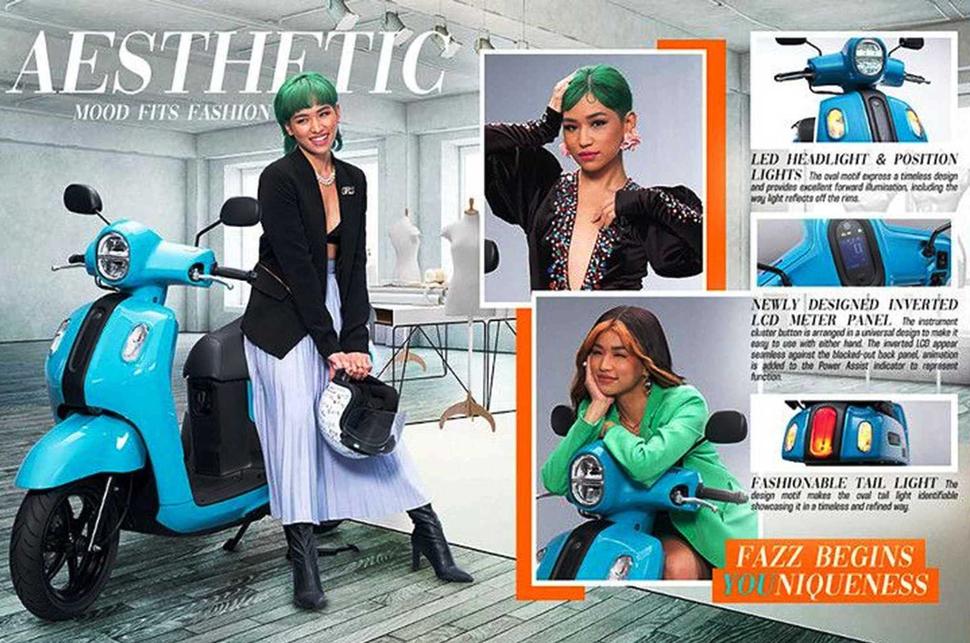 Yamaha отказались от своего традиционного спортивного угловатого дизайна облицовки в пользу более классического обтекаемого варианта. Хотя стиль Fazzio сложно с уверенностью причислить к ретро, но своей овальной фарой, двухцветными вариантами окраски и силуэтом он напоминает винтажные скутеры или воплощает ретро-футуристический дизайн, а яркие цвета дополняют его энергичный характер. Yamaha предлагает свой привлекательный городской скутер в трёх вариантах расцветки: голубой, красной и тёплой белой.