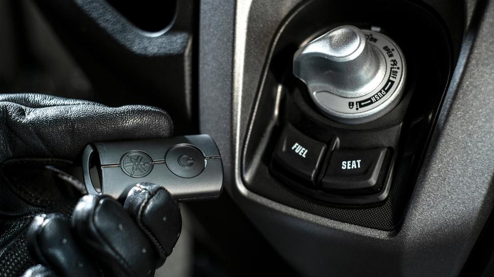 Yamaha NMAX 155 оснащён системой Smart Key - бесключевым замком зажигания. Брелок бесключевого доступа может лежать в кармане, система определяет его наличие и позволяет выполнять поворотной ручкой замка зажигания следующие операции: