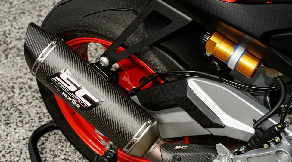 Но главное преимущество выхлопа SC Project - в том, что благодаря его лёгкости сухая масса Aprilia RS660 Extrema 2024 составляет всего 166кг - на 3кг легче стоковой RS660, в том числе за счёт карбоновых элементов обвеса. Extrema заявлена как серийная модель (то есть, не лимитка), и её поставки уже начались. Стоимость её составляет 13499 долларов - прилично дороже стоковой за 11499 долларов, а кроме того, доступен вариант полностью регулируемого амортизатора Ohlins ценой 1960 долларов, и один из них стоял на тестовом мотоцикле.