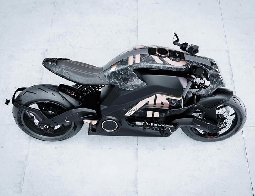 Arc Vector Signature Edition базируется на и без того технически продвинутом и экзотичном Arc Vector с его премиальными компонентами и передовой архитектурой. Он точно так же основан на безрамной конструкции с монококом-аккумулятором (батарея в сущности представляет собой шасси мотоцикла) и уникальной передней подвеске. Но Signature максимально насыщены карбоновыми элементами: корпус-монокок, кузовные панели и даже колёса изготовлены из штампованного карбонового композита. Всё это тёмное волокно дополняет графика цвета розового золота, грипсы из гравированной кожи и текстурированное седло с чёрной и медной прострочкой.