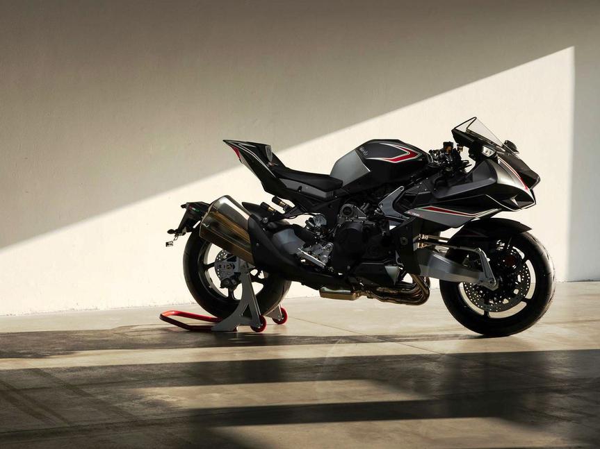 Bimota Tesi H2, оцениваемый ориентировочно в 72000 долларов, сочетает в себе 228-сильный двигатель с наддувом от Kawasaki H2 с легендарным шасси Bimota и уникальным рулевым управлением Tesi с центральной поворотной ступицей. С карбоновой облицовкой и маятником из фрезерованного алюминия и карбона, это чрезвычайно необычный мотоцикл.
