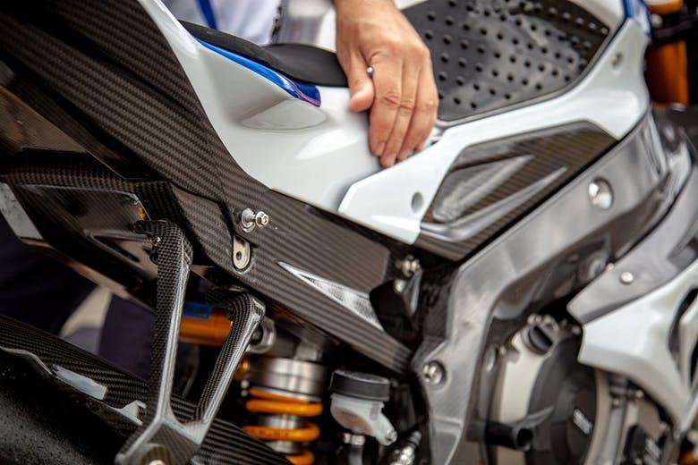 Карбон и титан играют важную роль в снижении веса HP4 Race. Он обладает полностью карбоновыми рамой, обшивкой и колёсами. Рама почти на 5 кг легче стоковой рамы S1000RR, а общий вес колёс - на полтора килограмма меньше, тем самым снижена инерция вращения и гироскопический эффект в поворотах. Выхлоп - полностью титановый Akrapovic для World Superbike. Даже метизы двигателя выполнены из титана.