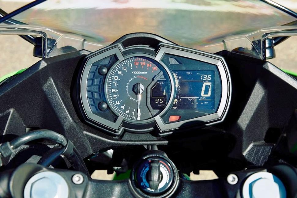 В плане мощности мотоциклы практически идентичны. CFMoto выдаёт чуть больше лошадок, но при этом тяжелее на 12кг, так что разгон после сотни у них одинаковый. На тахометре 450SS затемнён сектор после 10000, но фактически отсечка у него срабатывает на 12000, так что в этом плане CFMoto тоже соответствует Ninja 400.