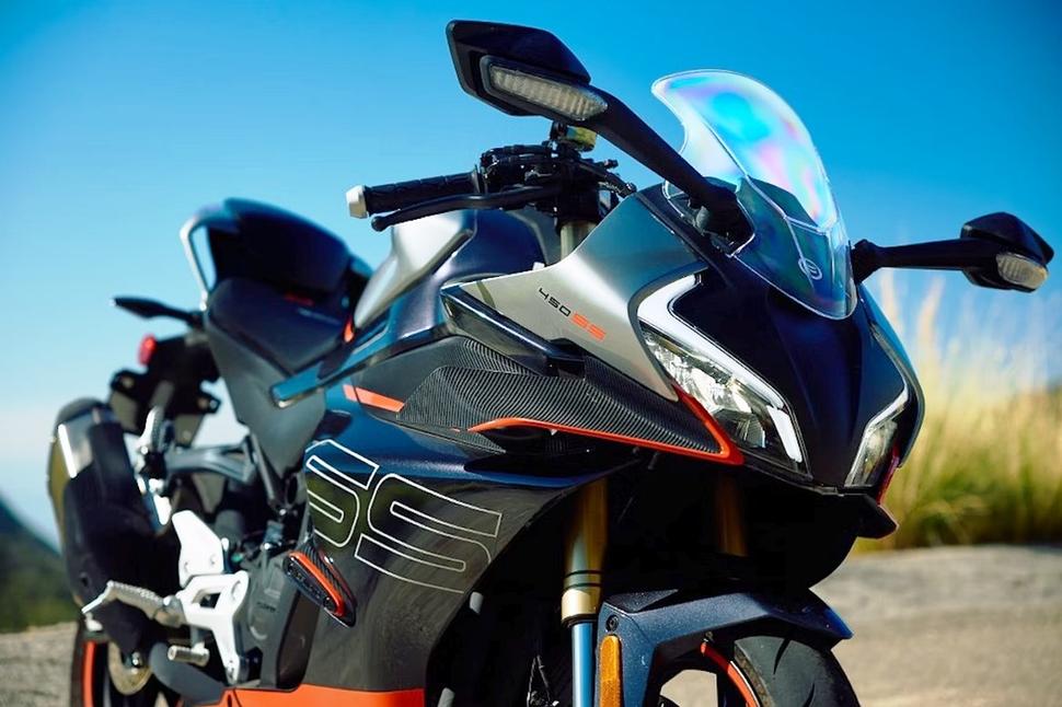 Дизайн 450SS тоже уникален в своём классе, он скорее относится к европейской школе - обтекаемый и крепко сбитый, с чётко очерченными и специально подчёркнутыми элементами, образующими общую довольно строгую форму. Крылышки и карбоновые вставки, может, чуть кричащие, но всё равно хорошо интегрированы, а отделка и подгонка всего на высшем уровне.